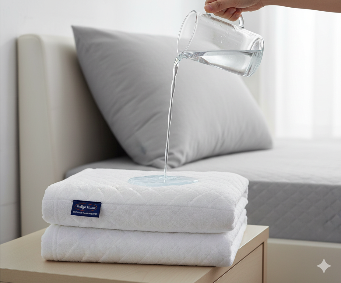Indigo Home Pillow Protector is a removable cover that goes over a pillow and underneath the pillowcase. It’s designed to extend the life of the pillow by protecting it from dust, sweat, allergens, and spills.